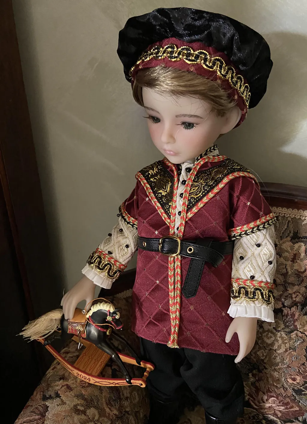 was pleasantly surprised by how beautiful this prince doll is. The craftsmanship is impressive, especially the medieval-inspired costume, which looks richly detailed and thoughtfully designed. From the embroidered accents to the classic royal silhouette, the outfit gives the doll an authentic, storybook charm. The doll itself is absolutely beautiful—the facial features are gentle and expressive. Happy with this purchase.