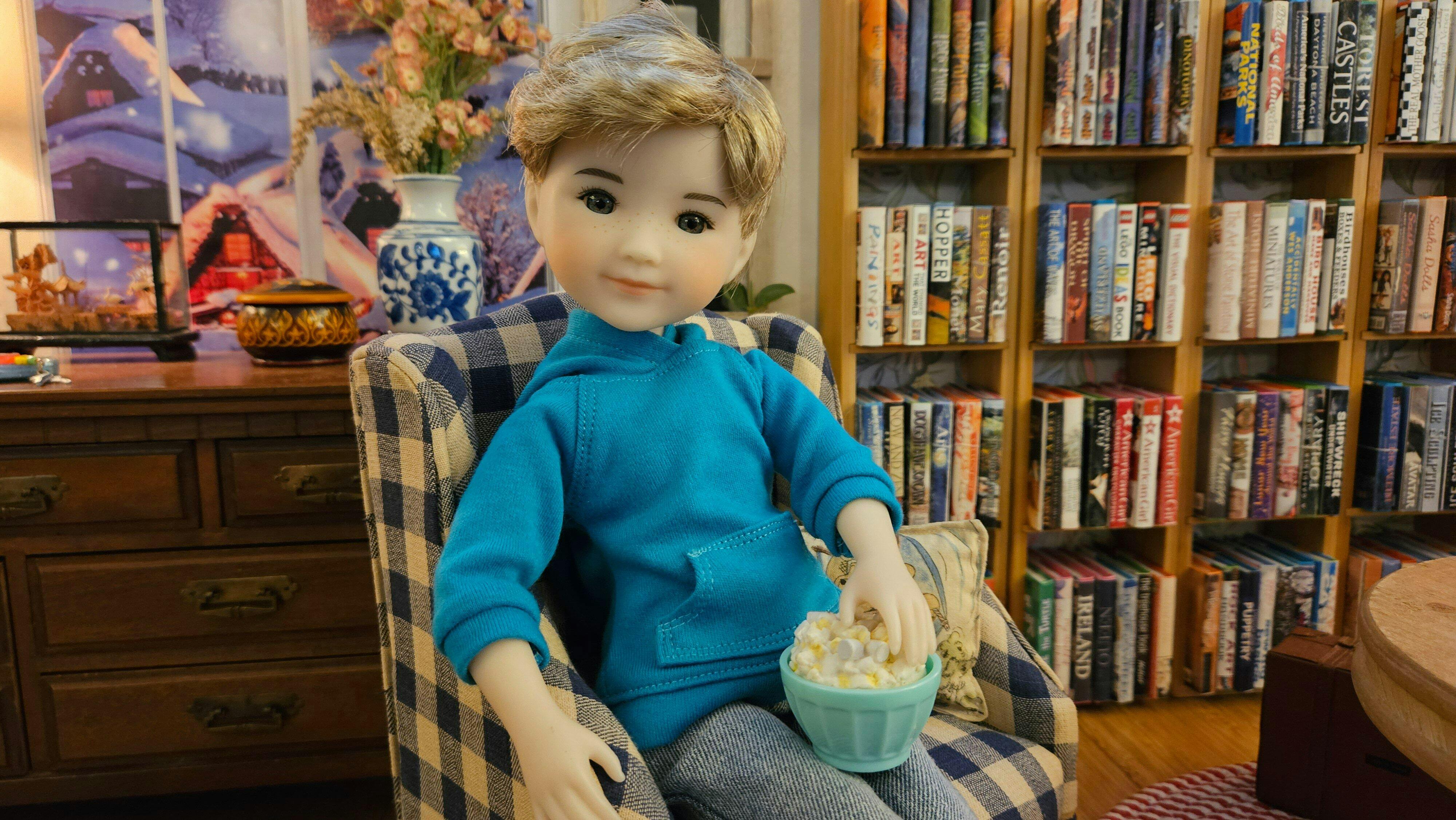Alex features medium blonde hair. He has beautiful hazel eyes and a sun-kissed complexion with freckles. He comes with his signature ‘Ride the Wave’ t-shirt, jeans, plaid flannel shirt, black knit cap, and sneakers.